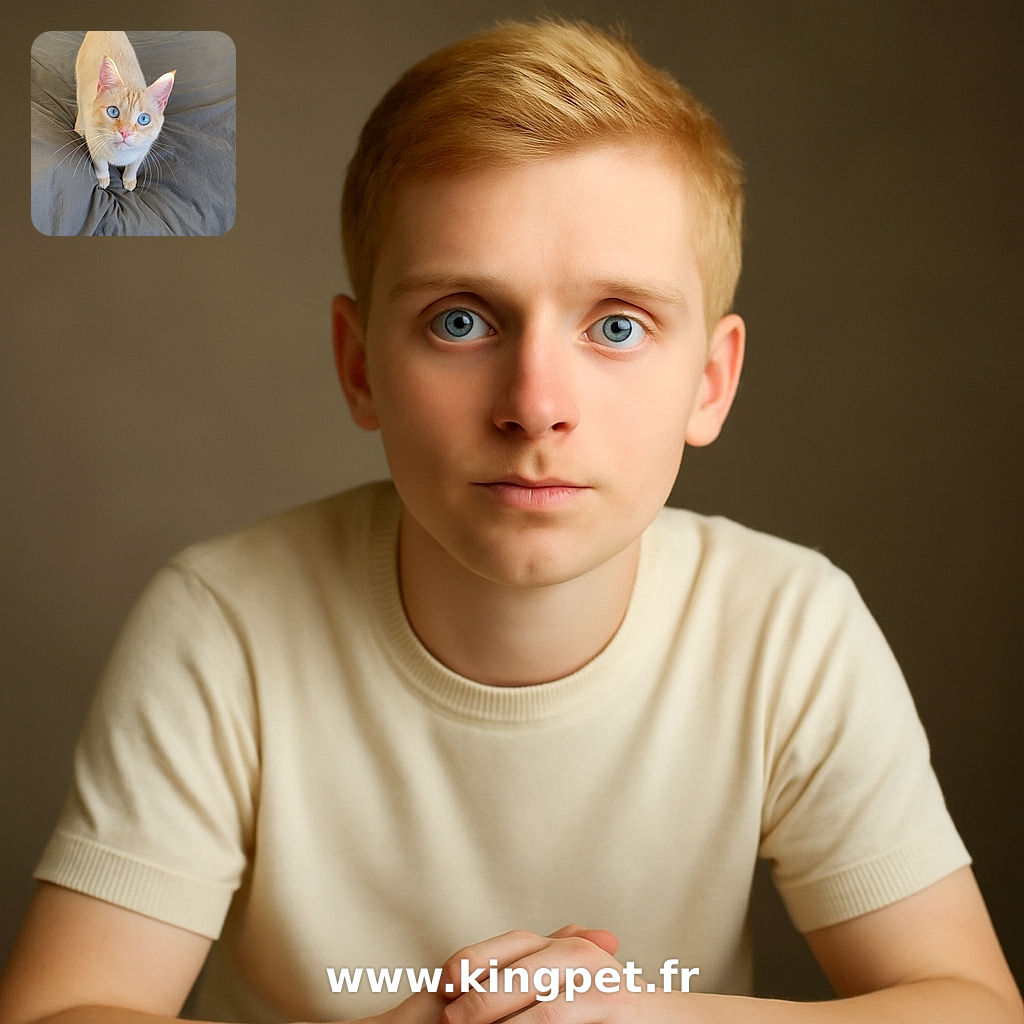 • A majestic ginger and white cat basks in a warm patch of sunlight on a cozy bed, looking contemplative and regal as if pondering the mysteries of the universe while perfectly framed by soft shadows and a wooden headboard.