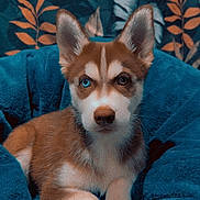 • Aslan a rejoint le concours — aidez-le/la à gagner de superbes lots ! puppy, dog, husky, heterochromia, blue_eye, brown_eye, pet, animal, fur, ears, blanket, indoor, cozy, resting, portrait, canine, cute, young, paw, decor